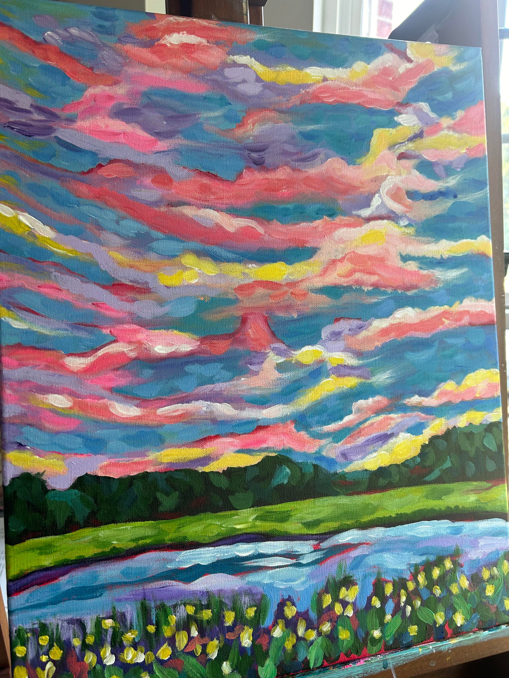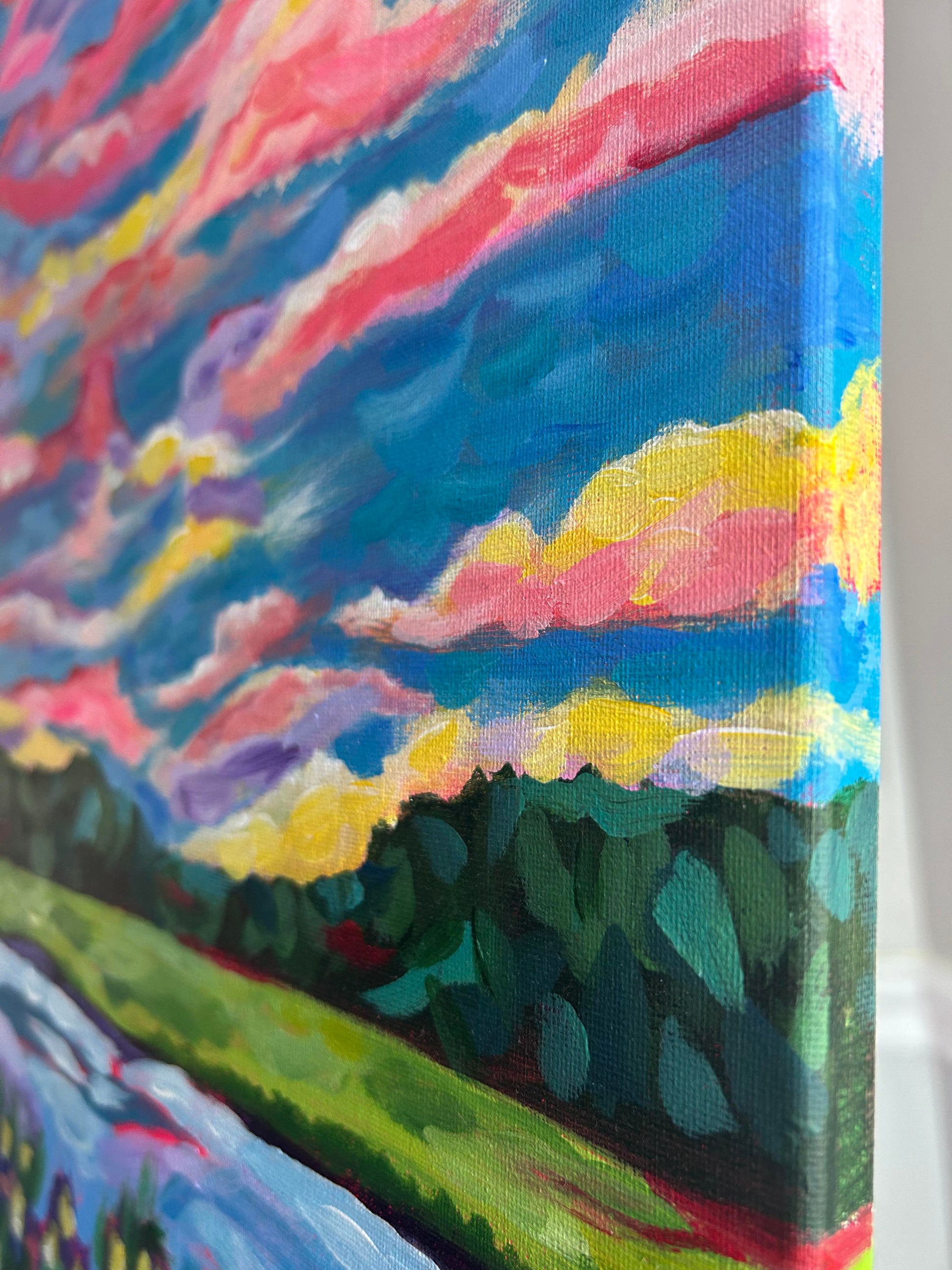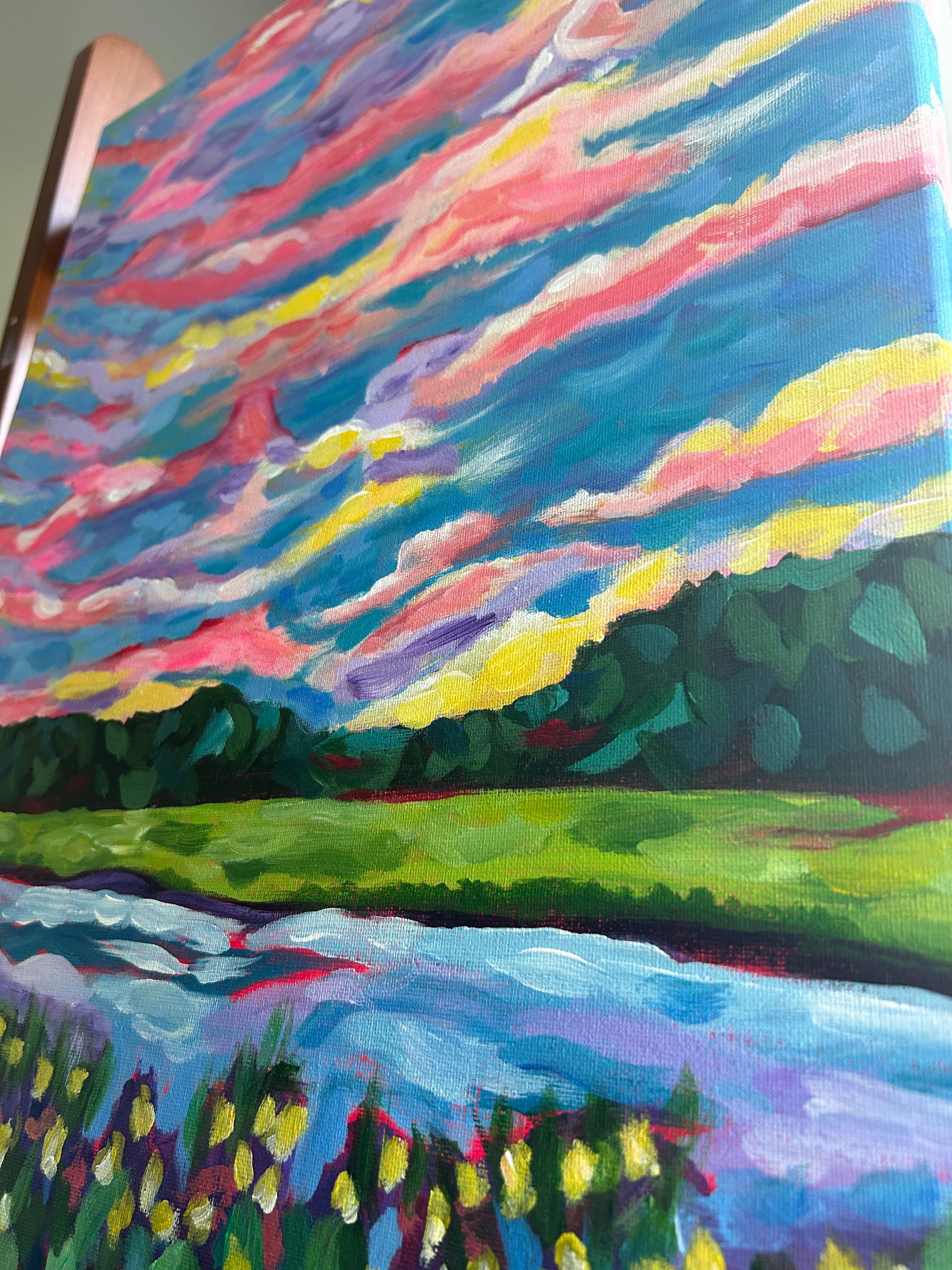 This painting has beautiful bold colors with expressive brush strokes that highlight the beauty of nature and the peace we find in our wanderings of creation. It's my hope you find joy and peace in this beautiful statement piece.